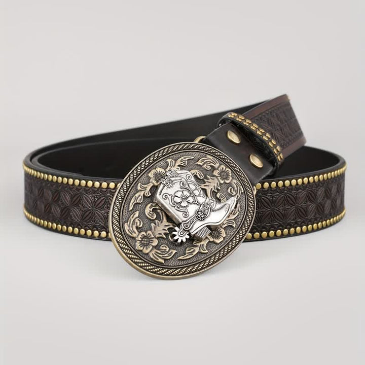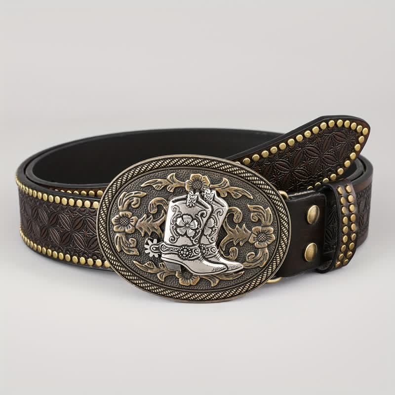 Los cinturones occidentales para hombres, que cuentan con una hebilla de bota grabada, lucen increíbles con cualquier atuendo, son geniales e impresionantes. Ya sea que salgas con un amigo o asistente a un festival de música, este cinturón versátil seguramente realzará tu estilo.
