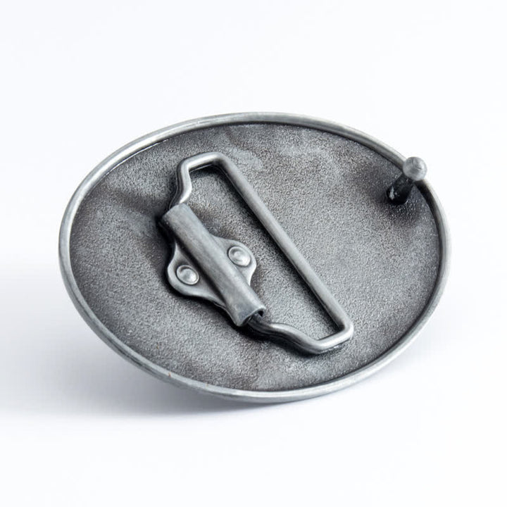 - Coloque la hebilla y el lazo de cuero en la cabeza del cinturón;