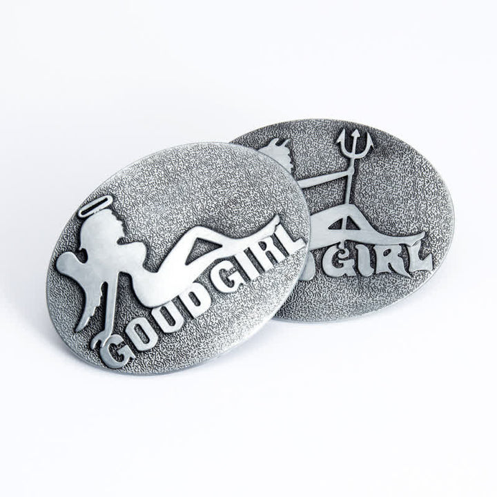 Esta hebilla de cinturón de chica mala y chica buena es una hebilla de ángel de broma de bar divertida y sexy. Tiene un aspecto elegante y estilizado, especialmente adecuado para combinar con jeans o ropa y zapatos de cuero.