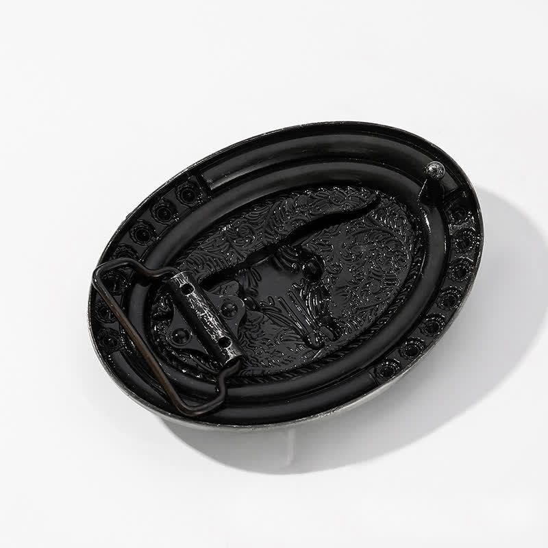 La clásica cabeza de toro de cuernos largos grabada y el patrón de flores, los diamantes de imitación brillantes y las piedras de colores añaden un estilo hemiano, puede combinar con cualquier jeans y pantalón casual.