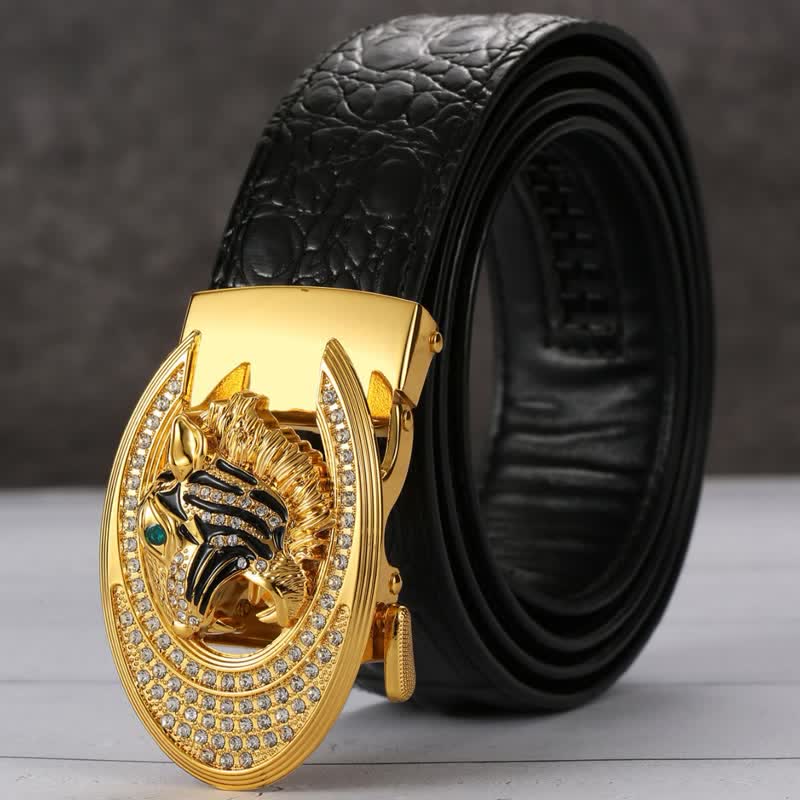 - Un cinturón brillante y atemporal con hebilla con diseño de cabeza de tigre es tu mejor opción si quieres mostrar más tu encanto.