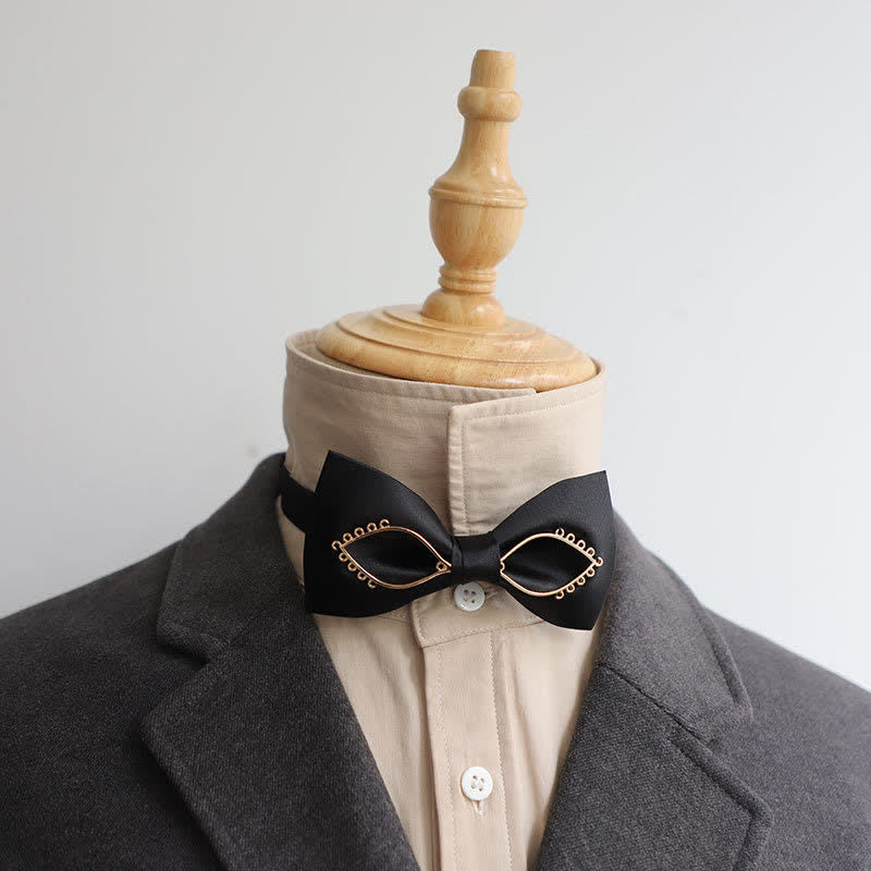 - El metal en la forma de los ojos y la nobleza del tejido le dan a esta pajarita un lado moderno y caballeroso.
