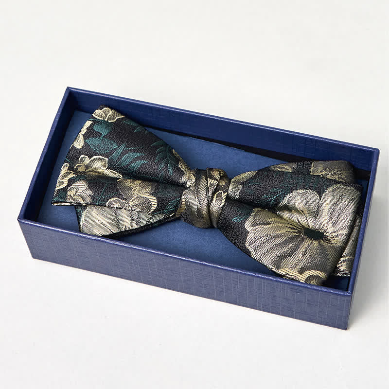 Pajarita de doble capa con estampado floral verde oscuro para hombre