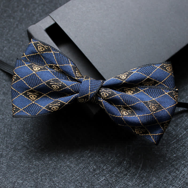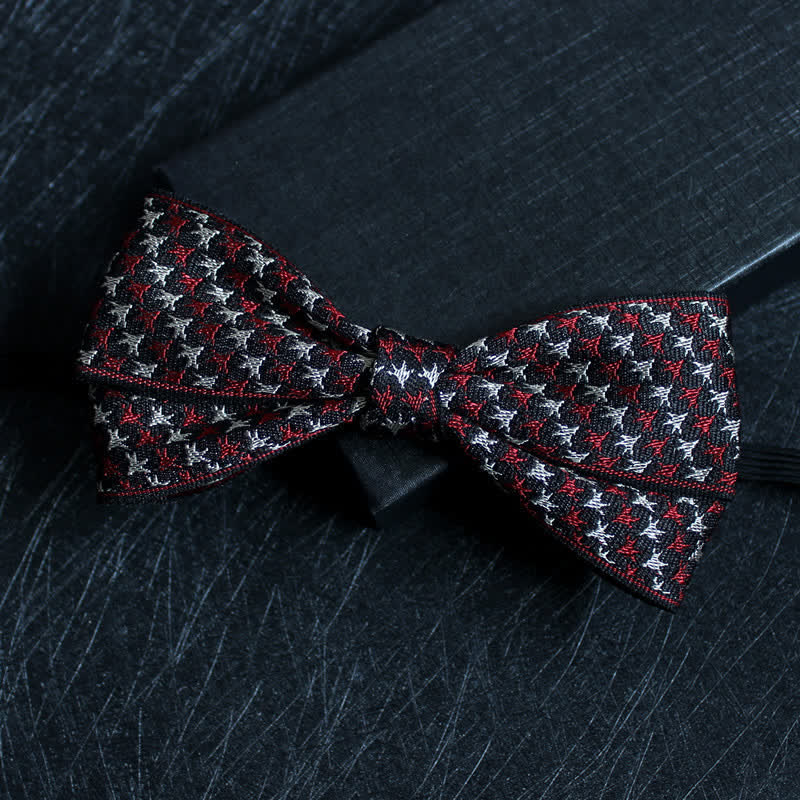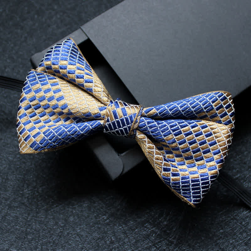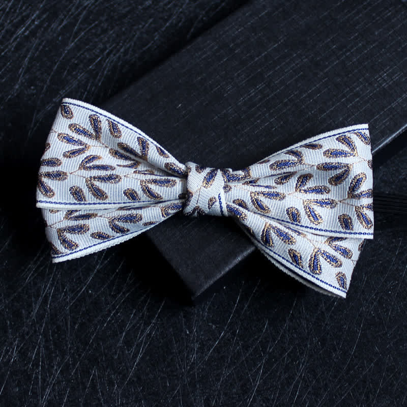 - Una pajarita de doble capa, tanto en colores clásicos como con estampado abstracto, es bastante versátil.