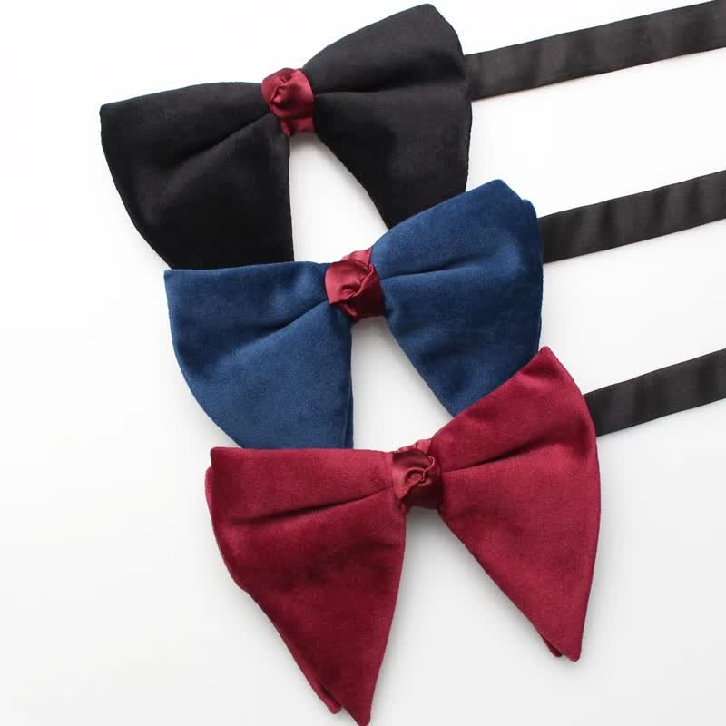 Pajarita de terciopelo de color liso de gran tamaño y punta para hombre