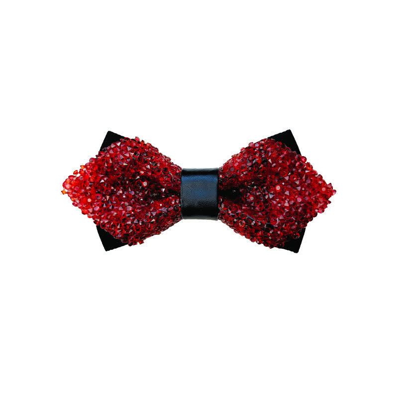 - Pajarita puntiaguda de doble capa brillante con pedrería o perlas falsas, brillante y lujosa.