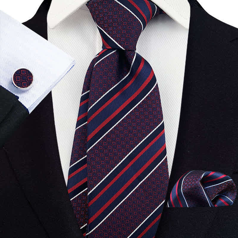 Conjunto de 3 corbatas de rayas de lujo para hombre en morado y azul marino