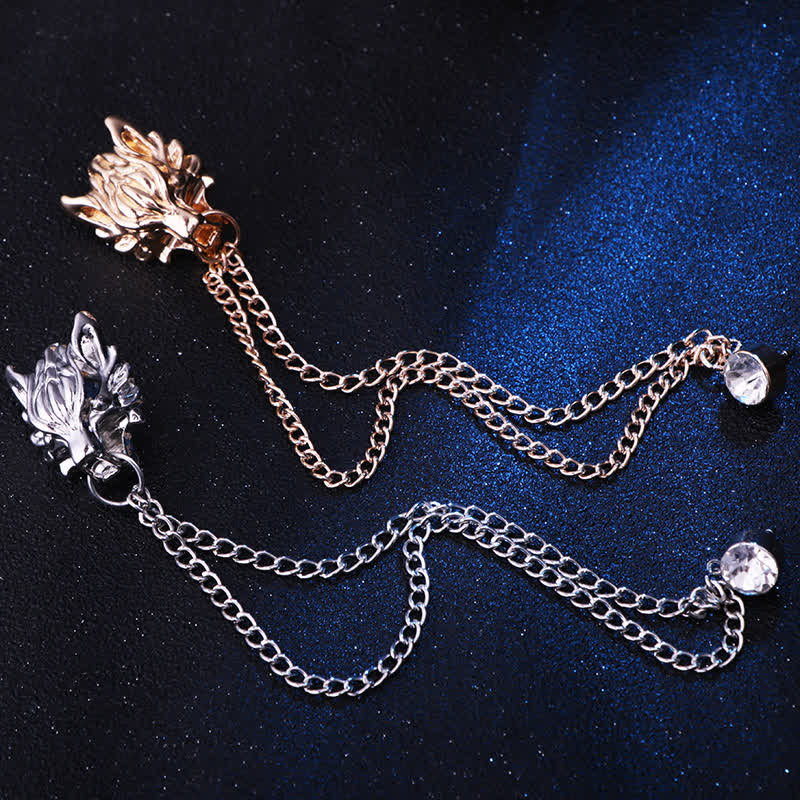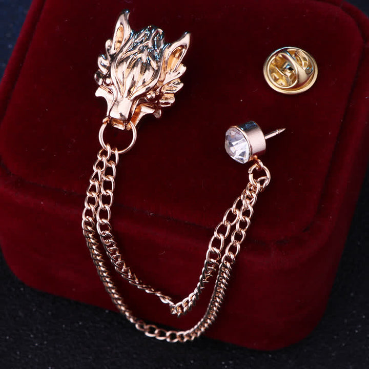 - Este exquisito broche de cadena con cabeza de lobo le agrega un toque retro y de gusto.