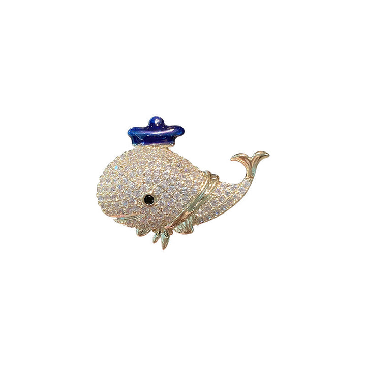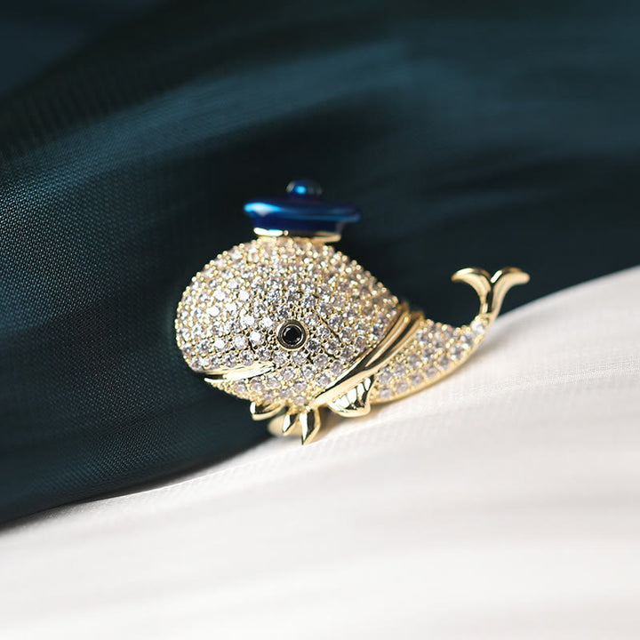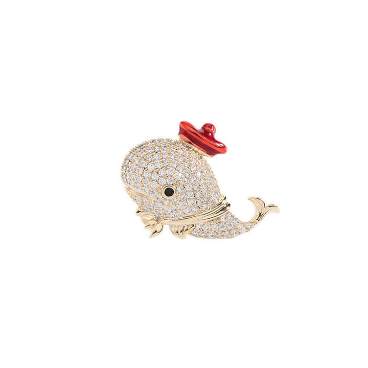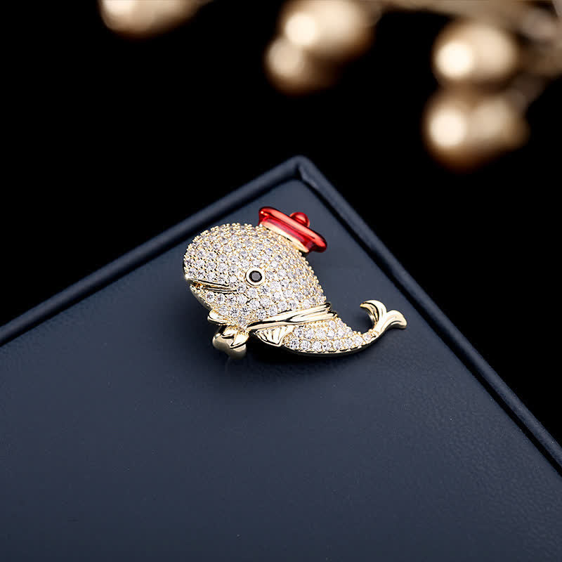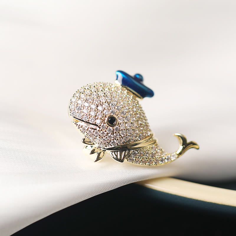 - Dale estilo y elegancia a tus prendas luciendo el broche de ballena con strass.