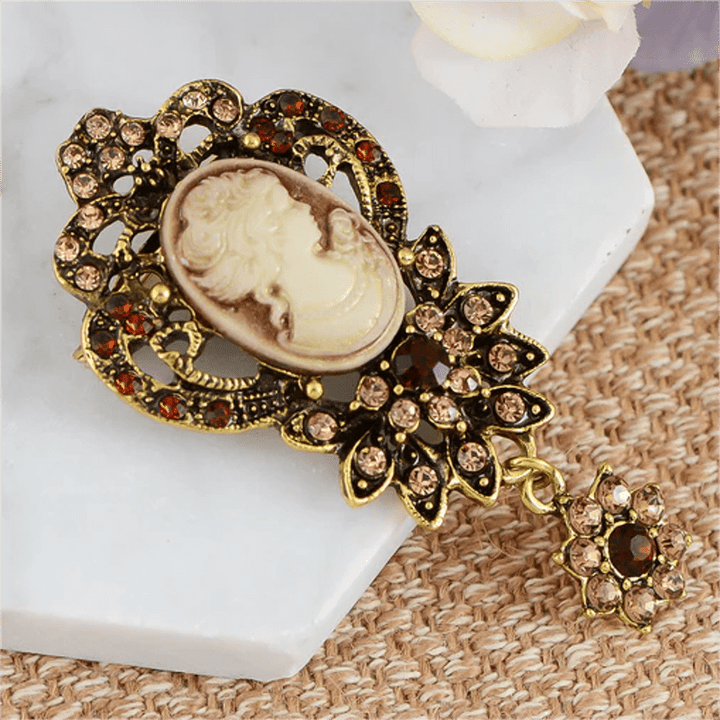 - Camafeo de inspiración vintage con camafeo de dama y brillantes diamantes de imitación de colores.