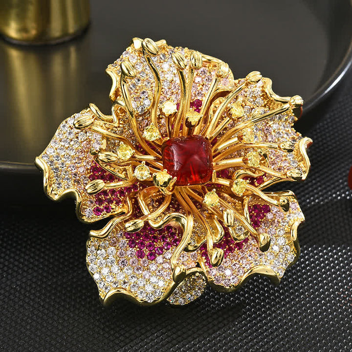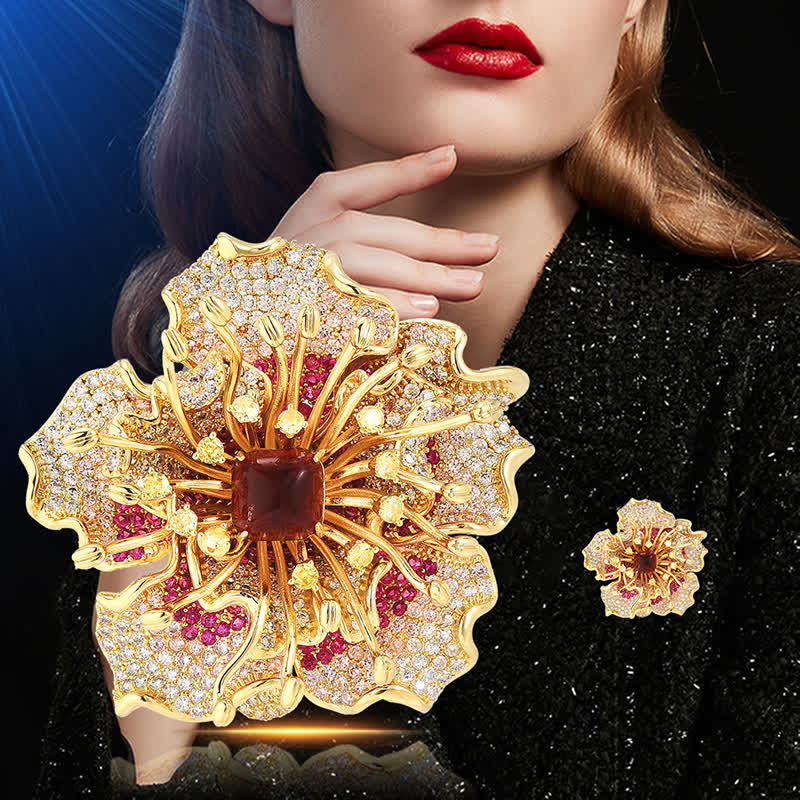 - Los pétalos y estambres de flores bañados en oro estaban incrustados en brillantes circonitas de colores.