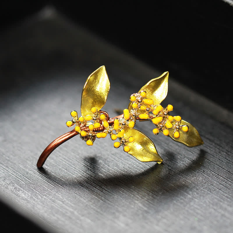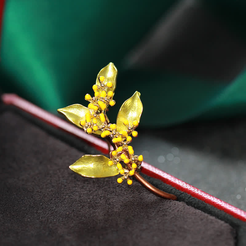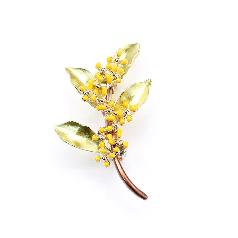 - Los detalles de pétalos y hojas esmaltados tienen textura y brillo.