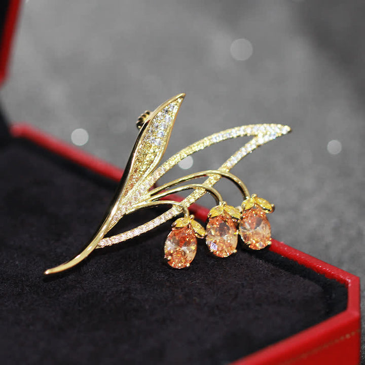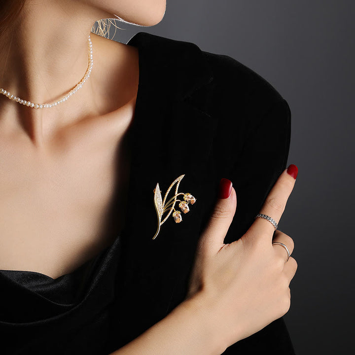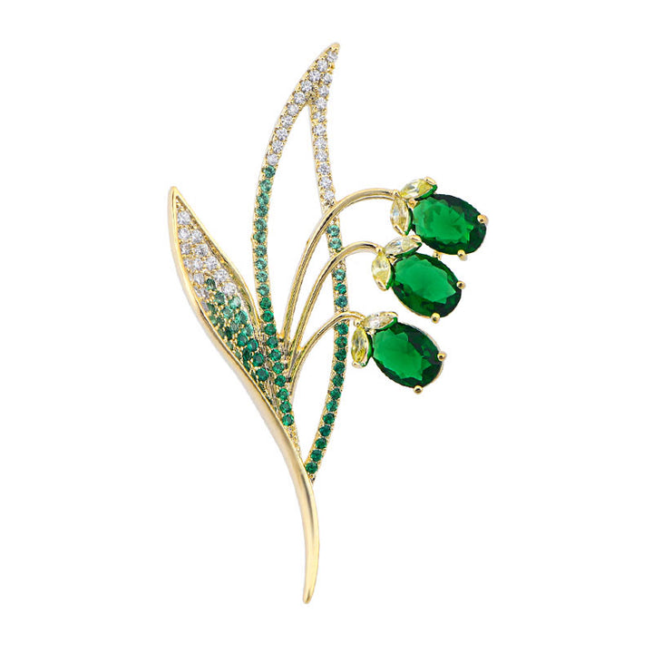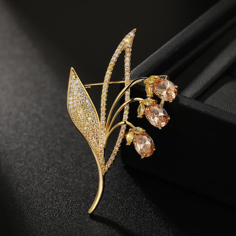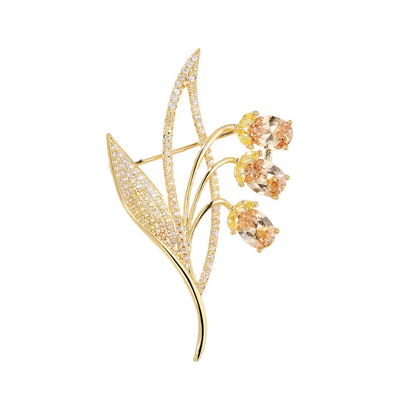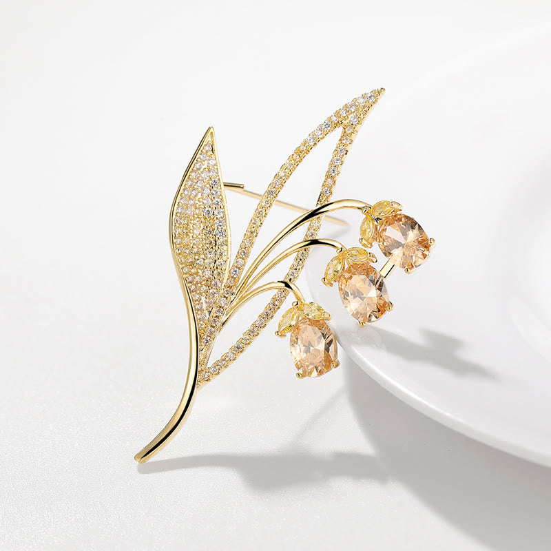 - Broche de lirio de los valles, presenta un hermoso patrón de lirio de los valles.