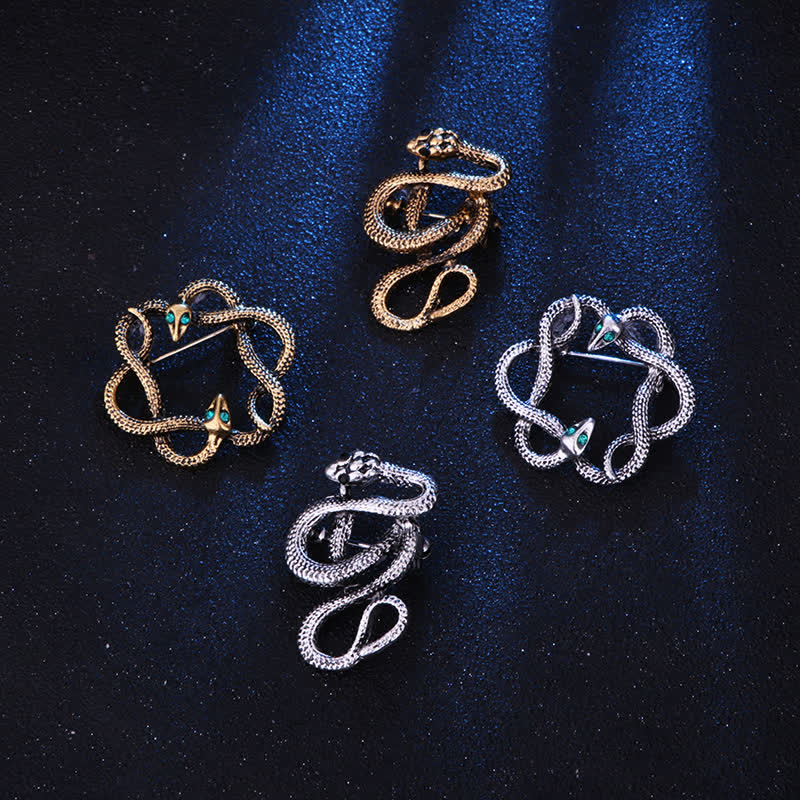 - Presenta una serpiente larga y sinuosa arrastrándose por el suelo, el cuerpo de la serpiente está grabado con un patrón.