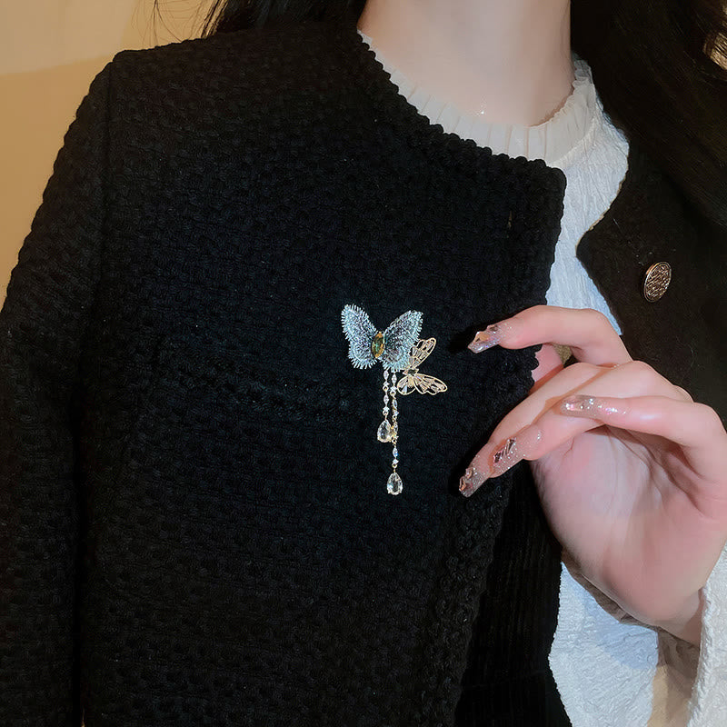- Broche de borla de mariposa, combinación azul y dorada, con tratamiento de superficie de tela única.