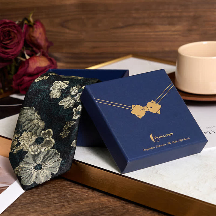 Dale un toque divertido a tus trajes con esta impresionante corbata floral verde bosque. Su verde bicolor transmite confianza. Su intrincado y detallado patrón la hace aún más memorable e impactante.