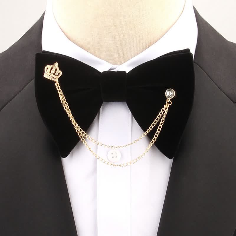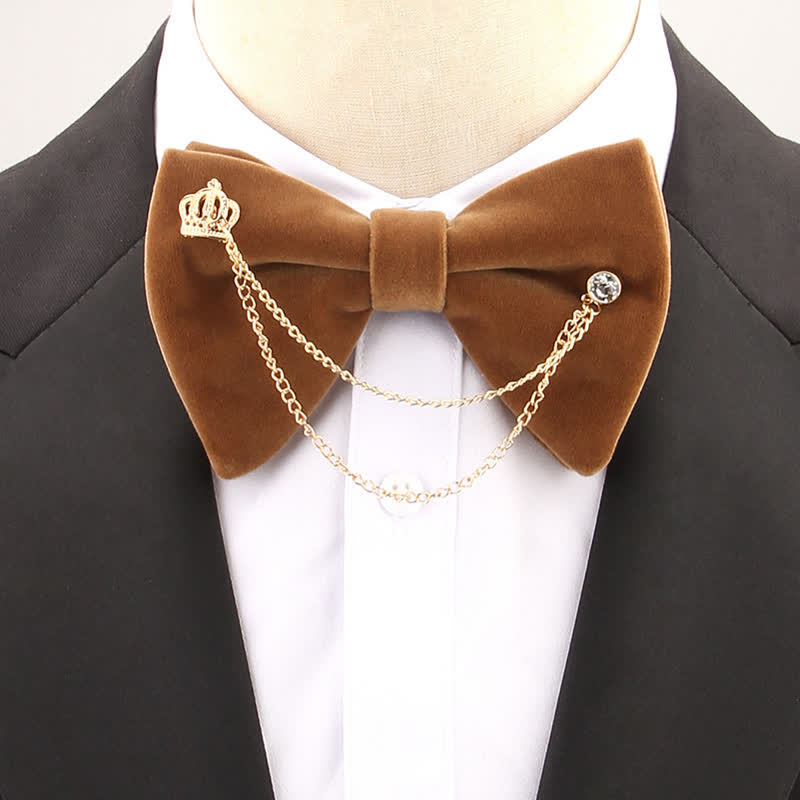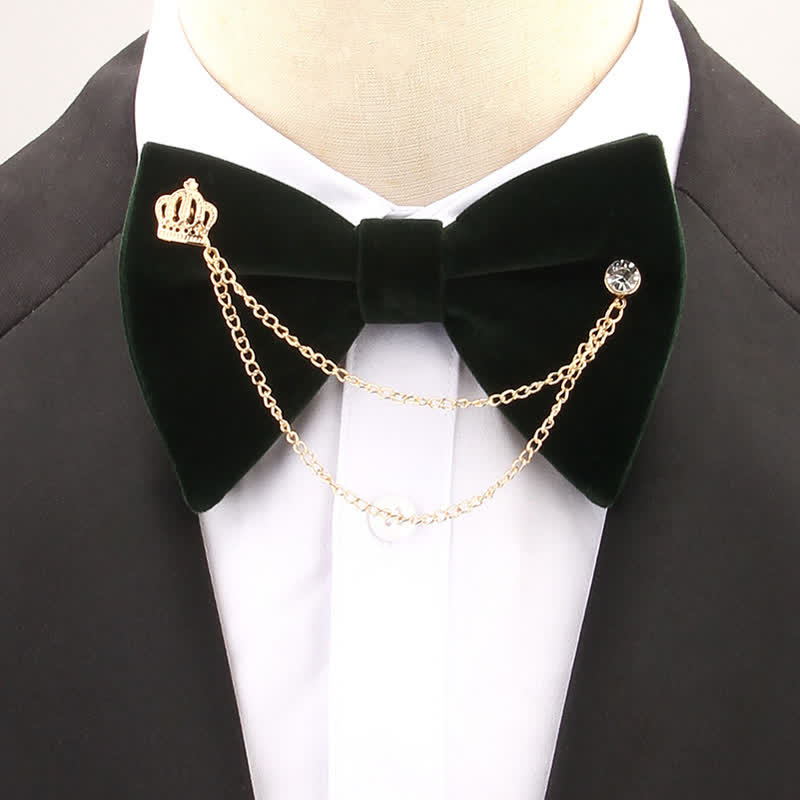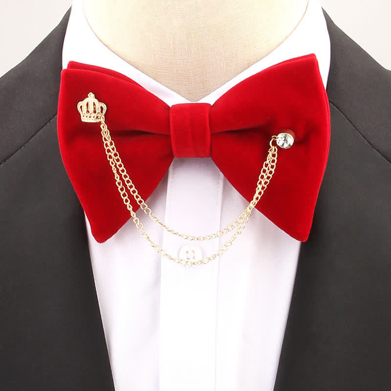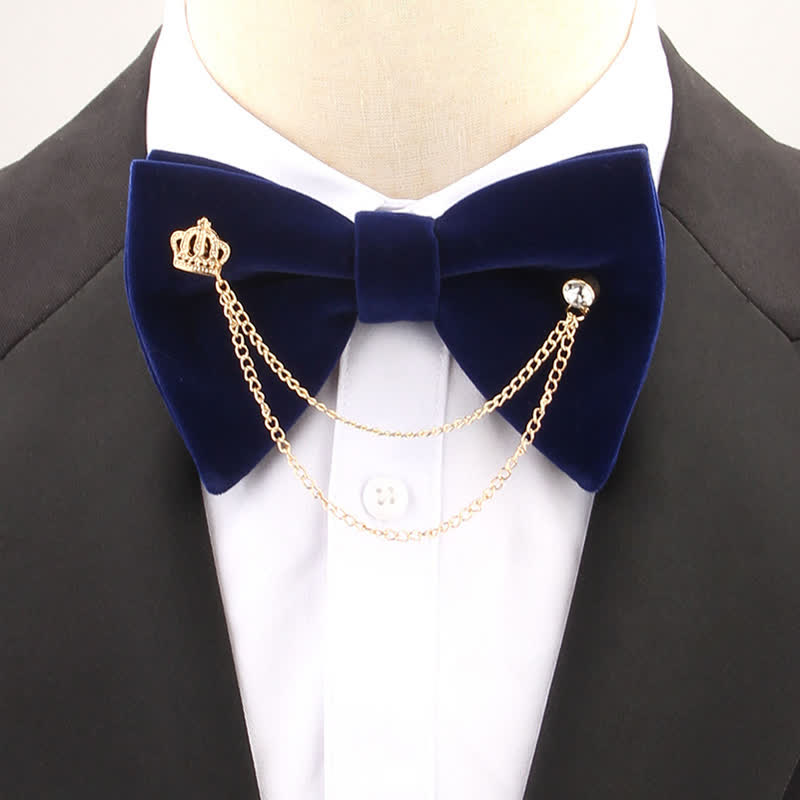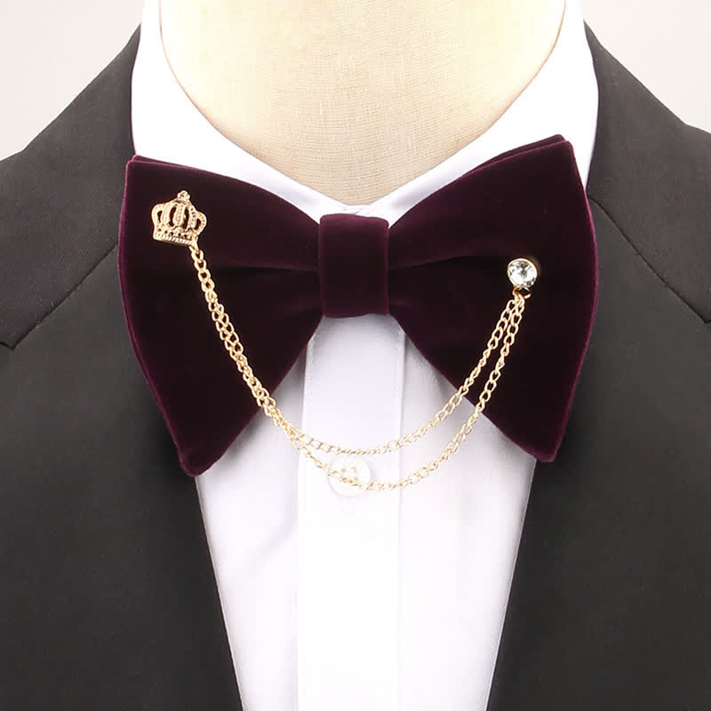Pajarita extragrande de terciopelo de color liso con cadena dorada