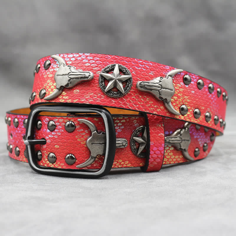 Este es el cinturón con tachuelas de calavera definitiva. Decoración con remaches, estilo punk rock metal. Estos diseños modernos y modernos le darán un toque especial a tu look y mostrarán tu espíritu punk. Ideal tanto para hombres como para mujeres.