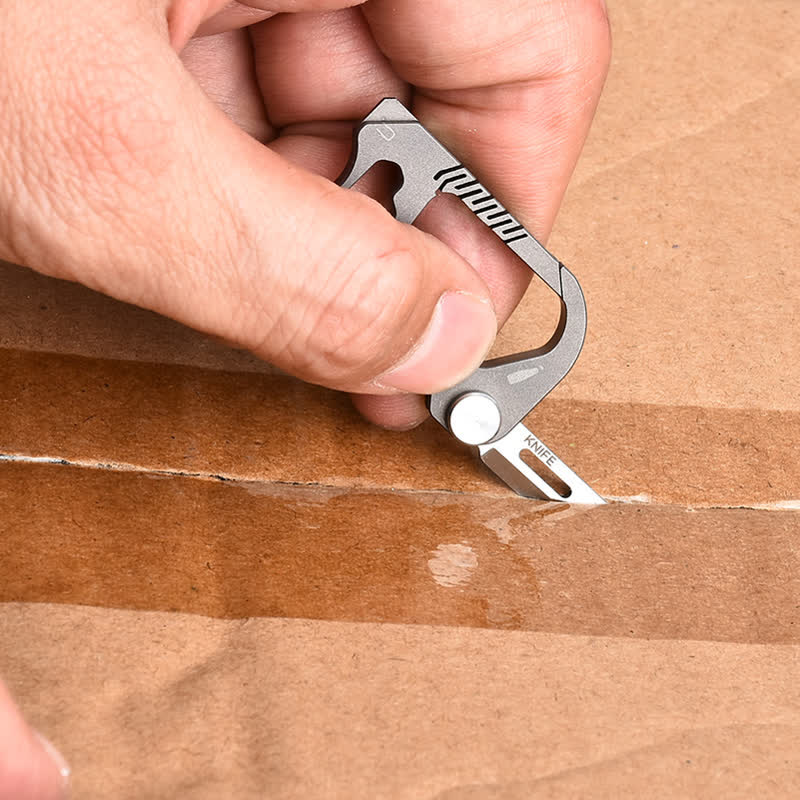 Puedes colgarlo como un mosquetón normal o sacarlo rápidamente para actividades al aire libre o emergencias. Cuando no lo uses, es práctico llevarlo en tu bolso como llavero. Cabe en la palma de la mano, así que no ocupa espacio. Puedes usarlo como herramienta EDC diaria para abrir botellas, cortar cuerdas, etc.