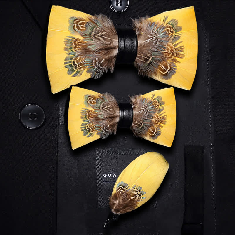 - Características: Pajarita de faisán de color amarillo brillante y vivo con marrón, adecuada para bailes y fiestas más relajadas, le brinda una sensación alegre, optimista y accesible.