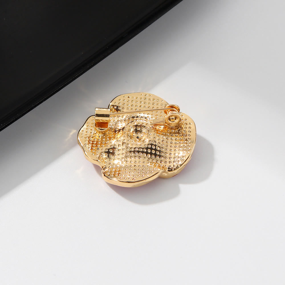 - La textura en capas de los pétalos y los detalles de gemas brillantes dan vida a la forma de amapola con un encanto delicado.
