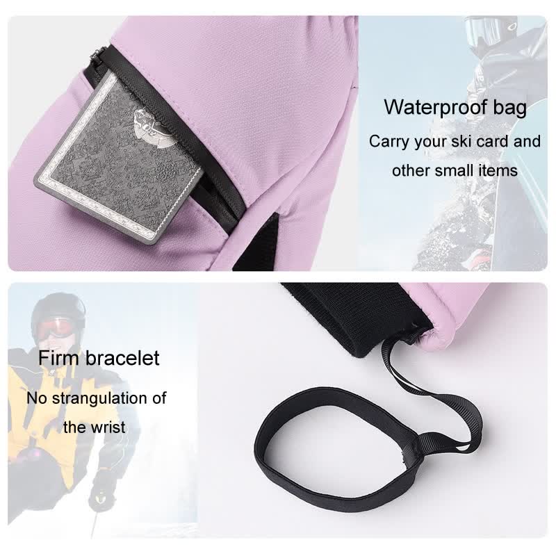 Tejido impermeable, también eficaz el agua, no es fácil que invada el interior de los guantes. Palma antideslizante, no es fácil que se resbale, aumenta la fricción, agarre más firme. Forro interior engrosado, calidez natural, suave y cómodo. La hebilla de enlace antipérdida evita que los guantes se caigan durante el patinaje, más cómodo de llevar.
