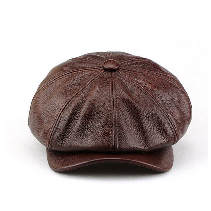 Boina de repartidor de periódicos de 8 paneles, con visera abotonada y tela de cuero de moda, que la hace elegante y clásica. Las líneas limpias y la artesanía apasionada te harán sentir realmente increíble cuando la uses.