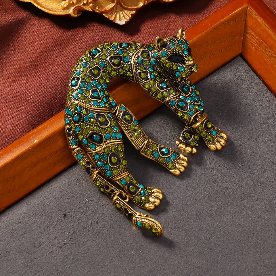 Broche unisex vintage con diseño de leopardo y pantera con diamantes de imitación