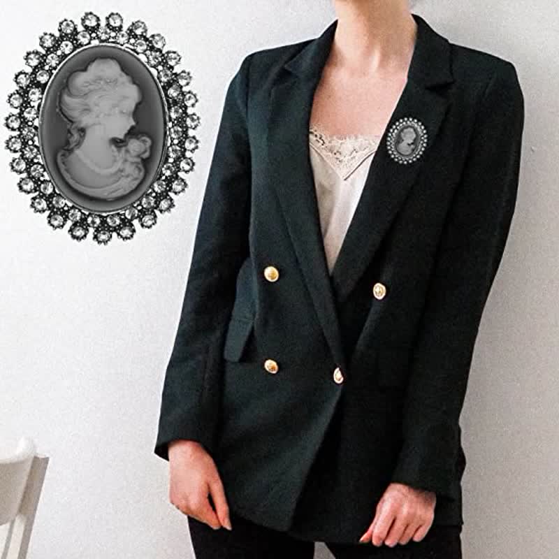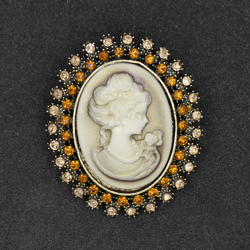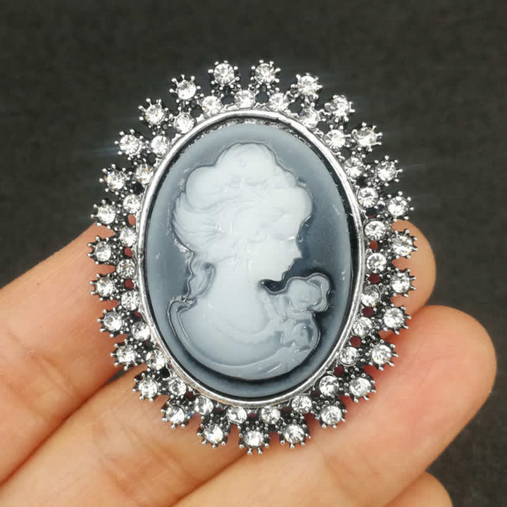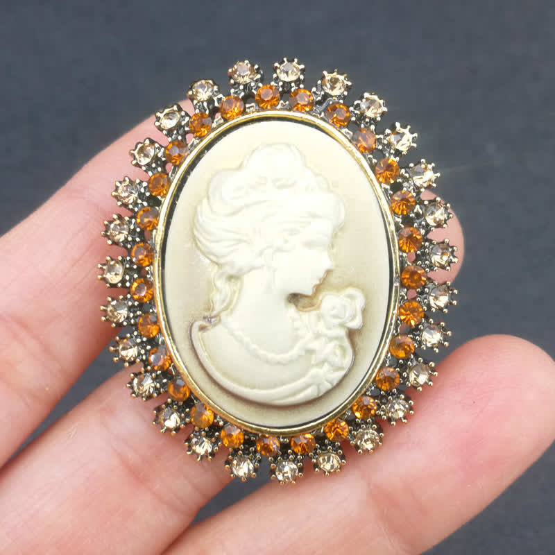 - Camafeo de inspiración vintage con camafeo de dama y brillantes diamantes de imitación de colores.