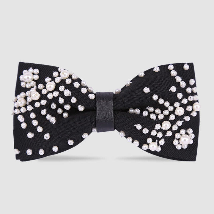 - La pajarita adornada con perlas de moda es perfecta para causar una excelente primera impresión.