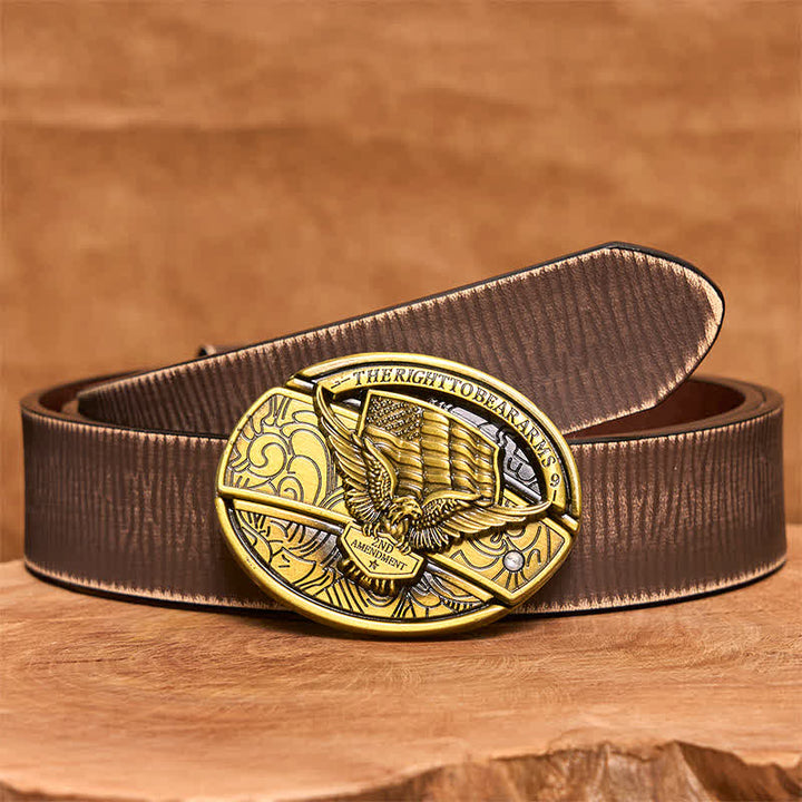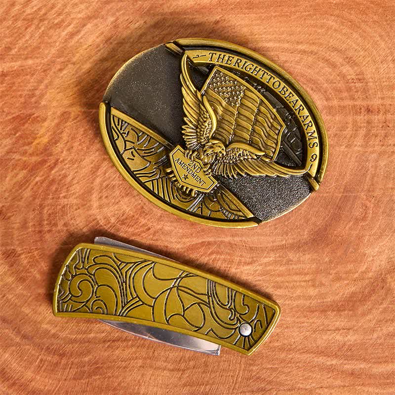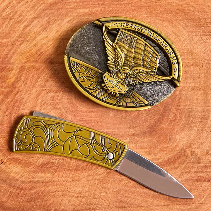 Cinturón de cuero con cuchillo plegable oculto con bandera de EE. UU. y águila de bronce para hombre - Águila - Sin cinturón - Cinturón no incluido - image 1
