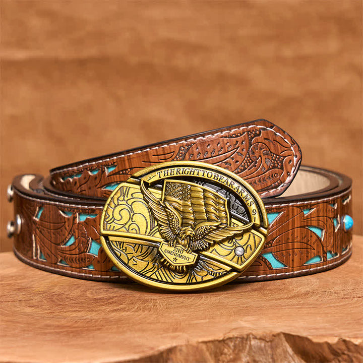 Cinturón de cuero con cuchillo plegable oculto con bandera de EE. UU. y águila de bronce para hombre - Águila - Cinturón tallado en turquesa - 42 - image 6