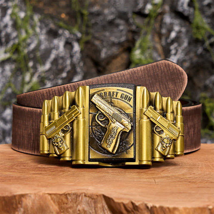 Cinturón de cuero con diseño de pistola y bala de bronce para hombre, con encendedor oculto, hecho a mano - Pistola - Sin cinturón - Cinturón no incluido - image 1
