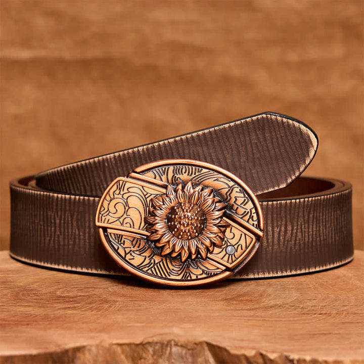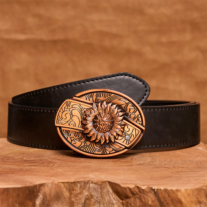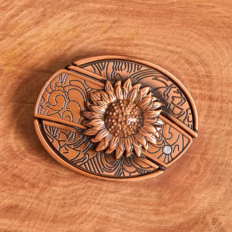 Cinturón de cuero con navaja plegable oculta con diseño de girasol en bronce rojo para hombre - Girasol - Sin cinturón - Cinturón no incluido - image 1