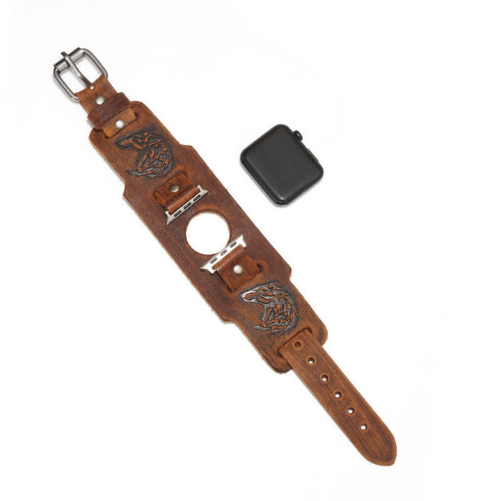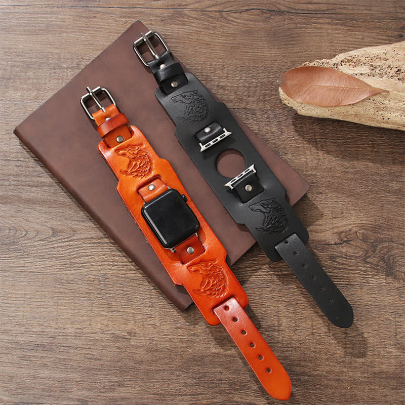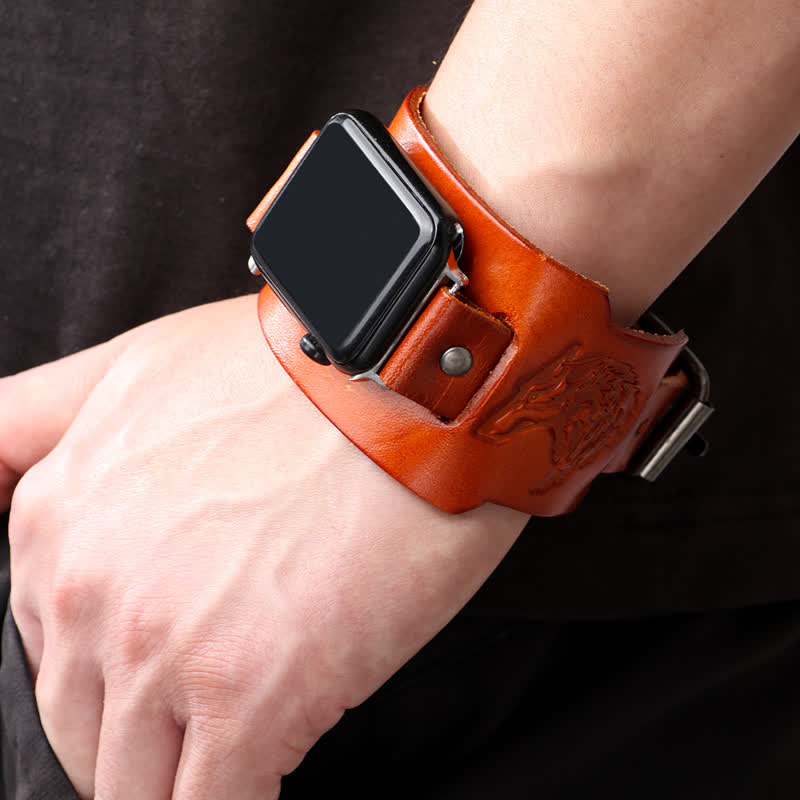 Pulsera de cuero con diseño de lobo y relieve punk.