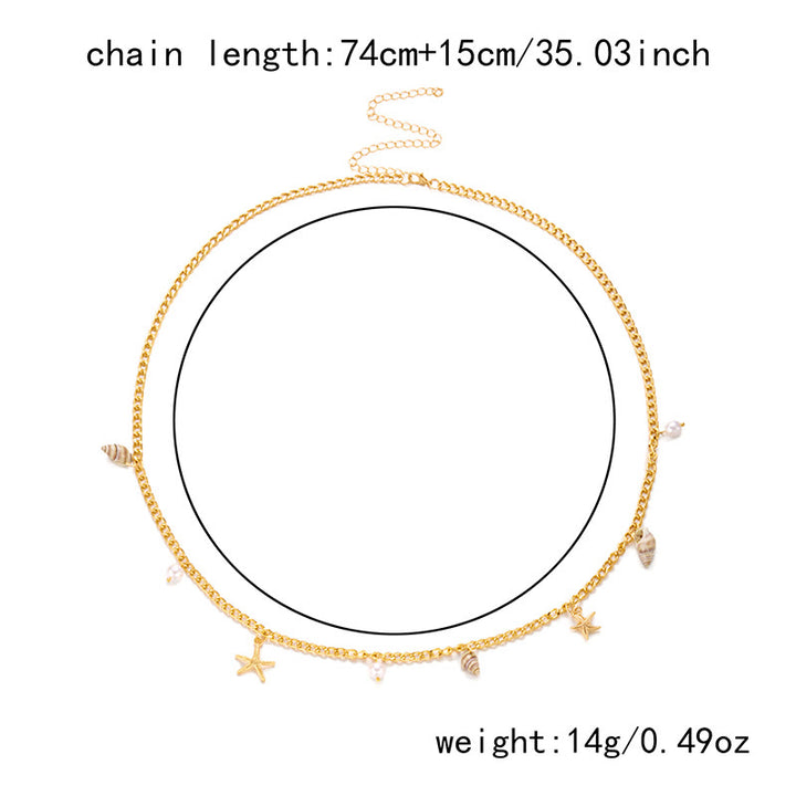 Esta elegante cadena para la cintura presenta un diseño inspirado en sirenas con estrellas de mar, conchas y detalles de perlas para un estilo bohemio y playero. Elaborada con una aleación de metal resistente y perlas artificiales, es un accesorio duradero y llamativo.