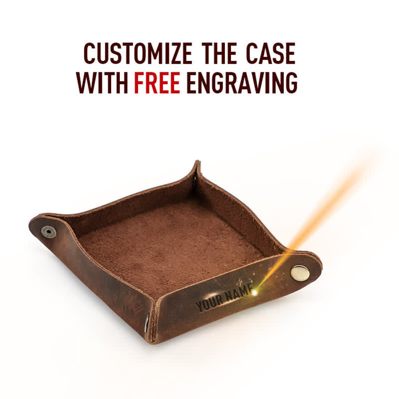 - Fabricada en auténtica piel de vacuno, nuestra bandeja de valet aporta un toque de elegancia y durabilidad a su hogar u oficina. La textura natural del cuero irradia una sofisticación atemporal que complementa cualquier decoración.