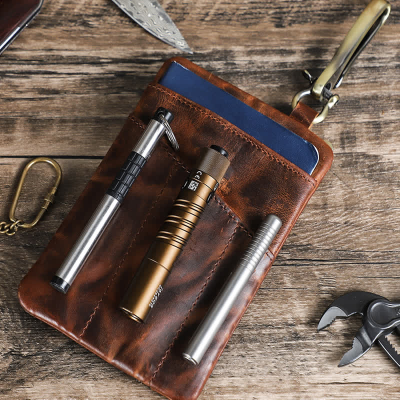 El cuero fue tratado con un efecto robusto y desgastado, y mejora con el tiempo. Una funda EDC todo en uno: una funda de cuero para herramientas permite guardar todos tus equipos EDC, multiherramientas, bolígrafos, linternas y cuchillos, manteniéndolos organizados, en su lugar y sin perder ninguna pieza. Es ideal para actividades al aire libre.