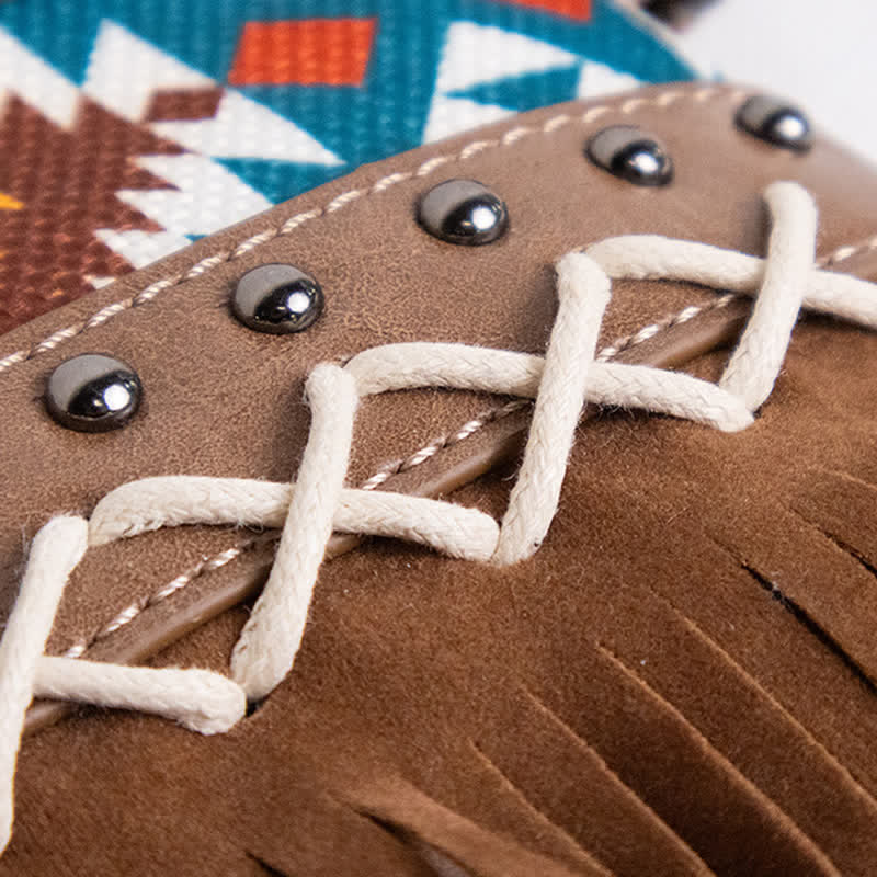 Amplía tu colección con un toque único de estilo western. Confeccionado con intrincados estampados aztecas e impresionantes detalles de flecos, este bolso de hombro es un accesorio de moda para cualquier ocasión.
