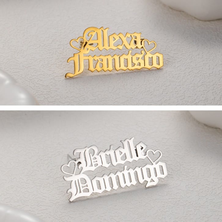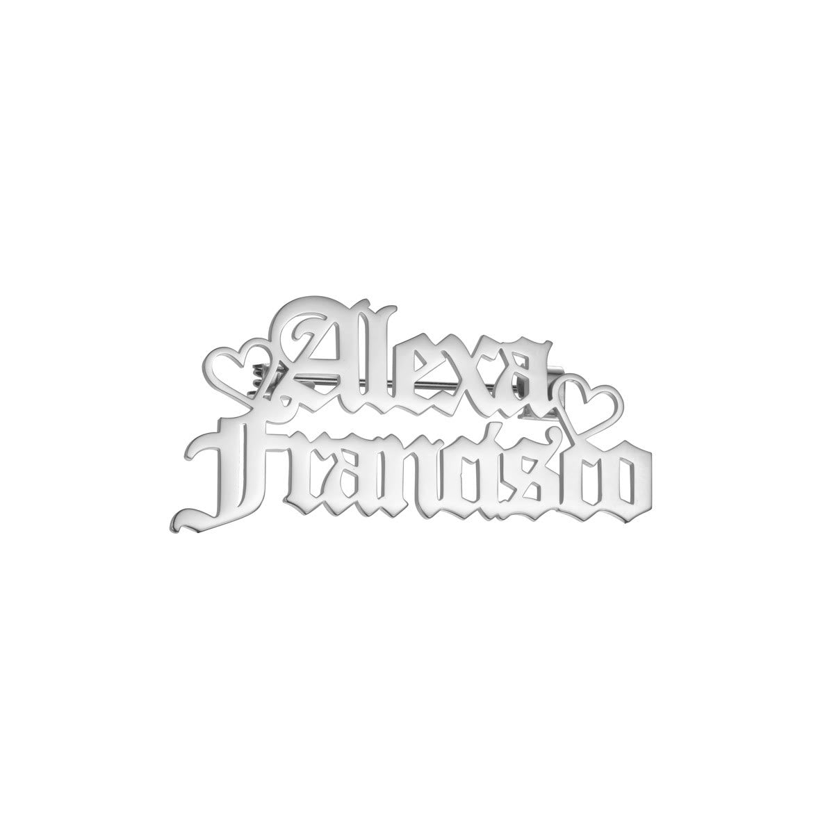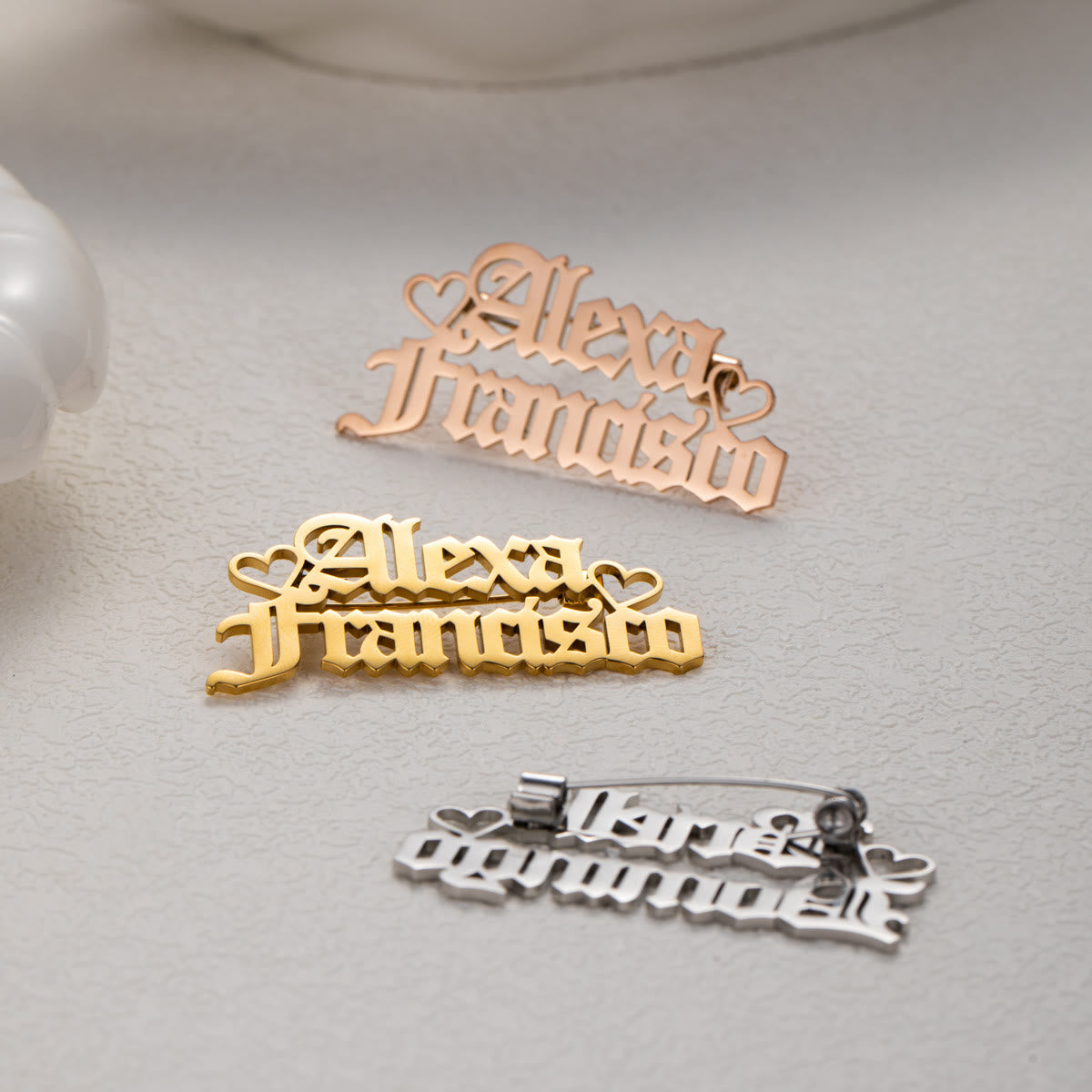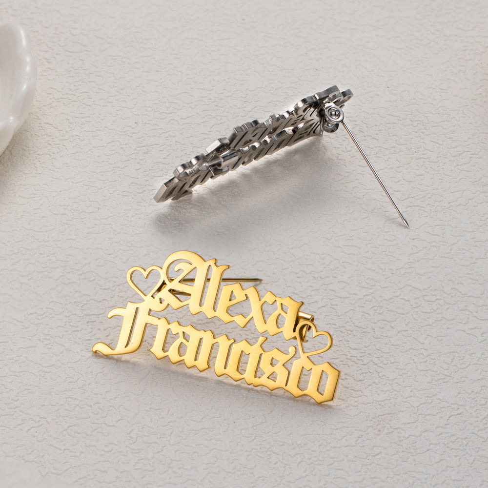 Broche personalizado con dos nombres, accesorio de acero inoxidable para traje