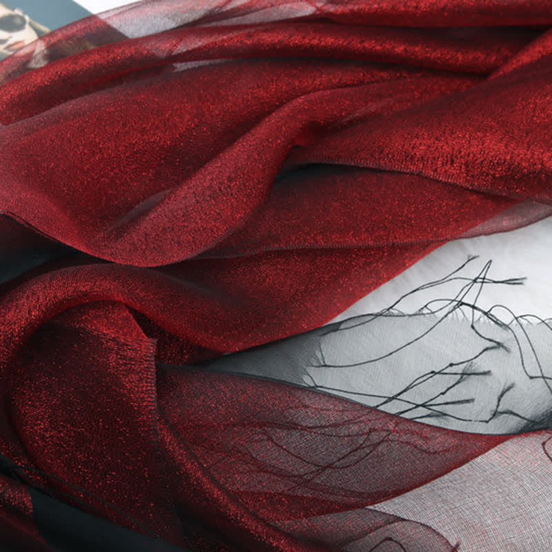 Bufanda de seda de organza con borlas brillantes y doble capa para mujer
