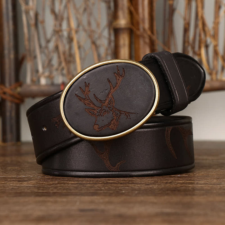 Cinturón de cuero con estampado de ciervo grabado con láser para hombre