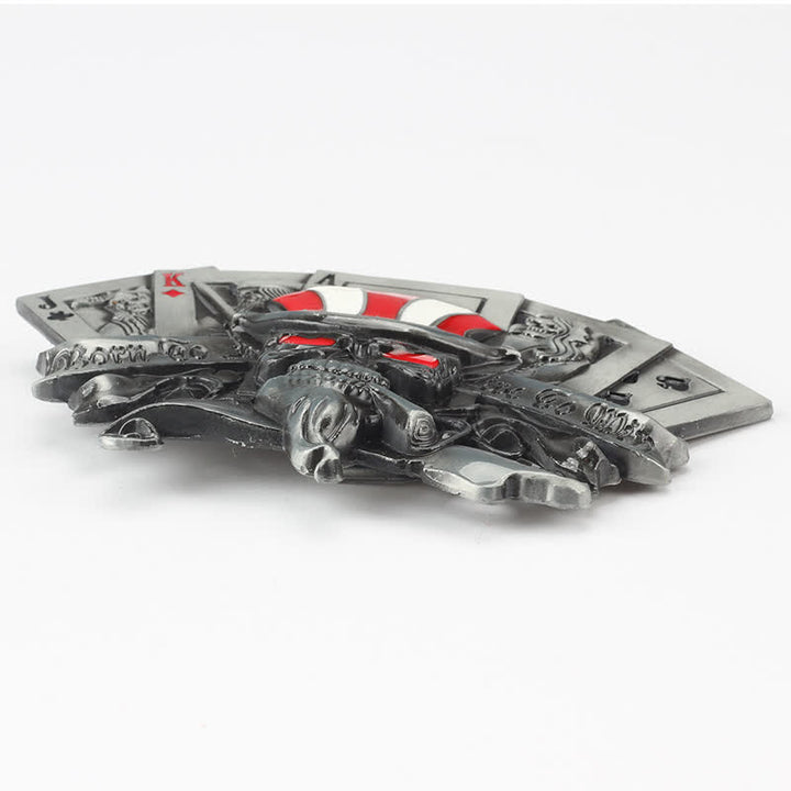 Cinturón de cuero con hebilla de calavera de póquer Live To Win para hombre