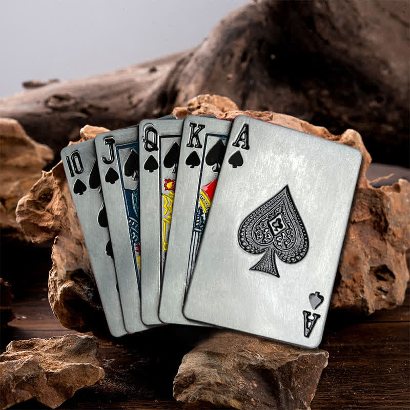 El motivo de esta hebilla de cinturón tiene un aspecto tridimensional y una superficie plateada mate muy noble. La hebilla de cinturón con forma de póquer de estilo vintage resalta cualquier estilo con un diseño moderno.