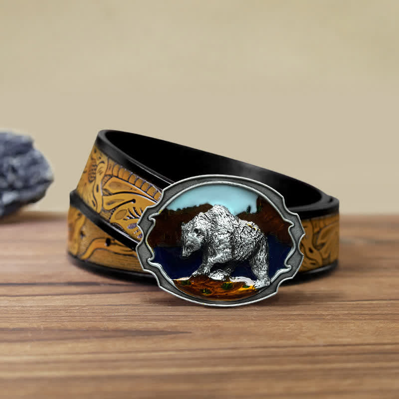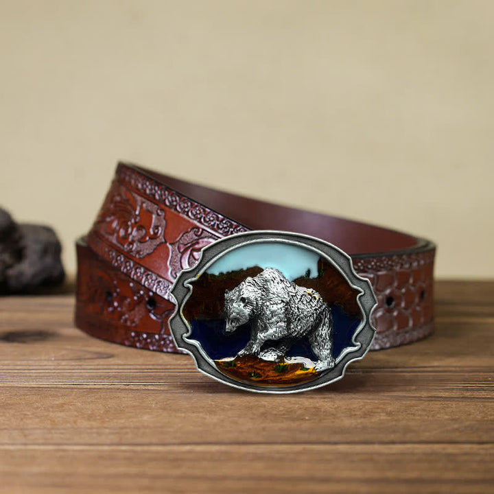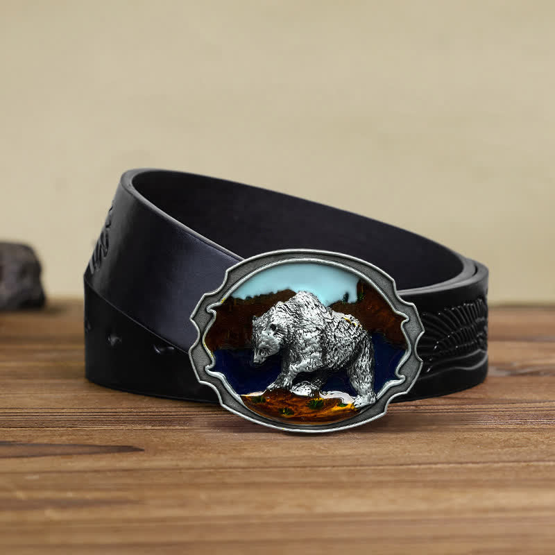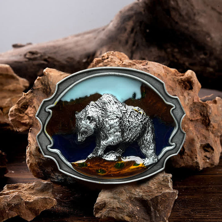 Esta maravillosa hebilla de oso polar tiene un aspecto muy exclusivo, con un patrón de oso polar muy detallado y una escena esmaltada en color. Este diseño único sin duda te hará destacar entre la multitud.
