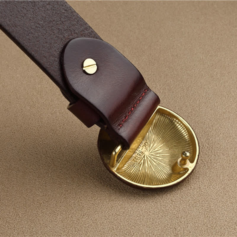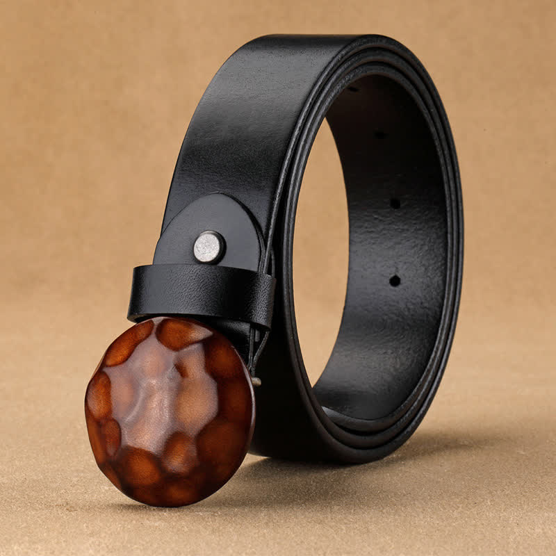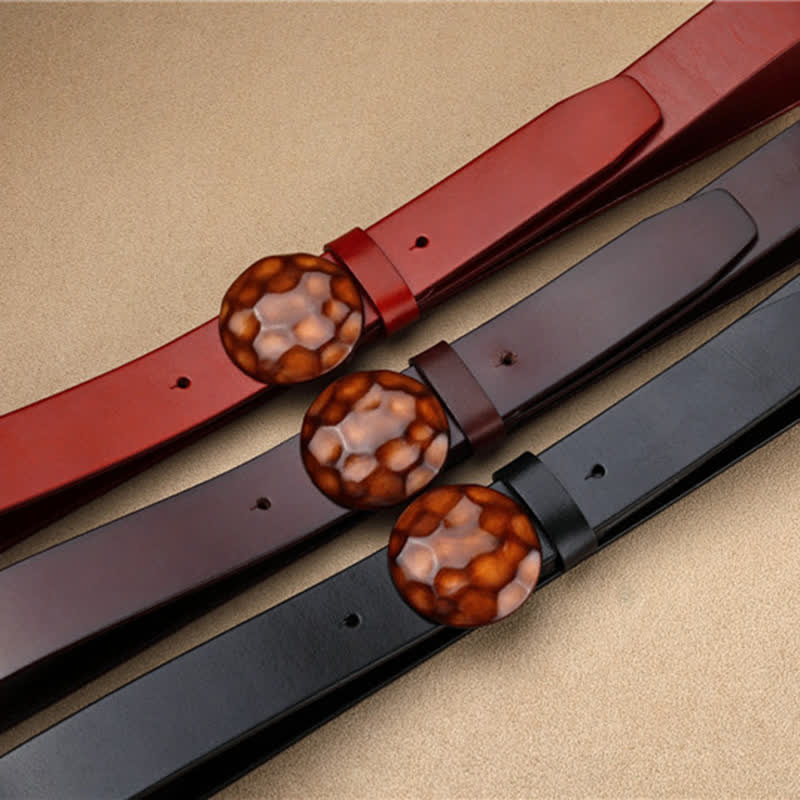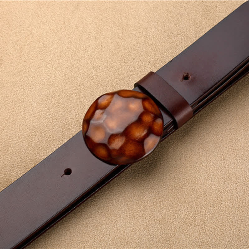 Este cinturón tiene una hebilla especial de forma redonda que parece una pelota. Esta hebilla le agrega un toque de encanto y personalidad, lo que lo hace destacar entre la multitud.