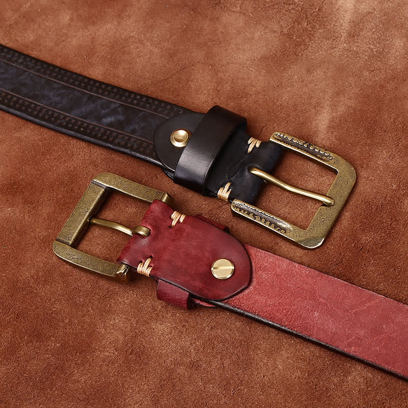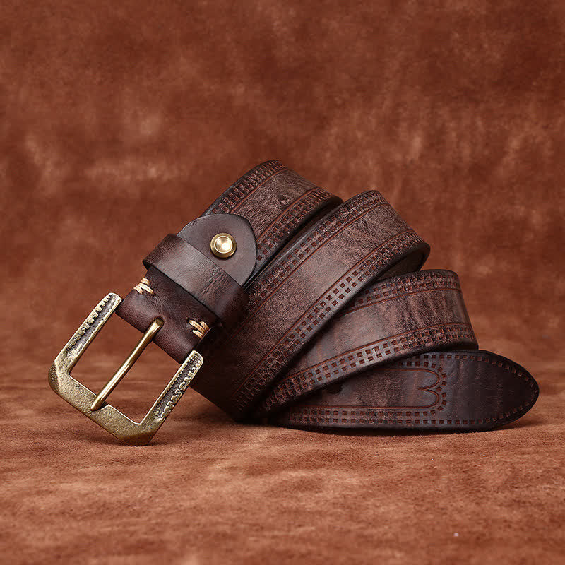 Este cinturón para hombre de excelente calidad tiene una hebilla retro y un patrón en relieve, y es perfecto para tus jeans o pantalones caqui. Muy bien construido y duradero, le da un aspecto vintage.