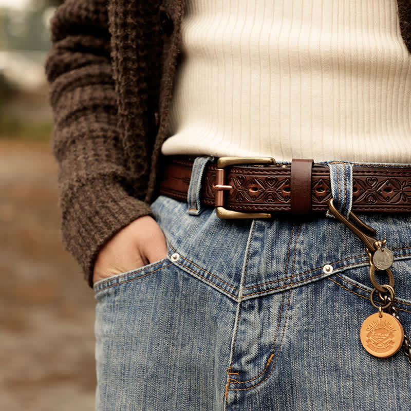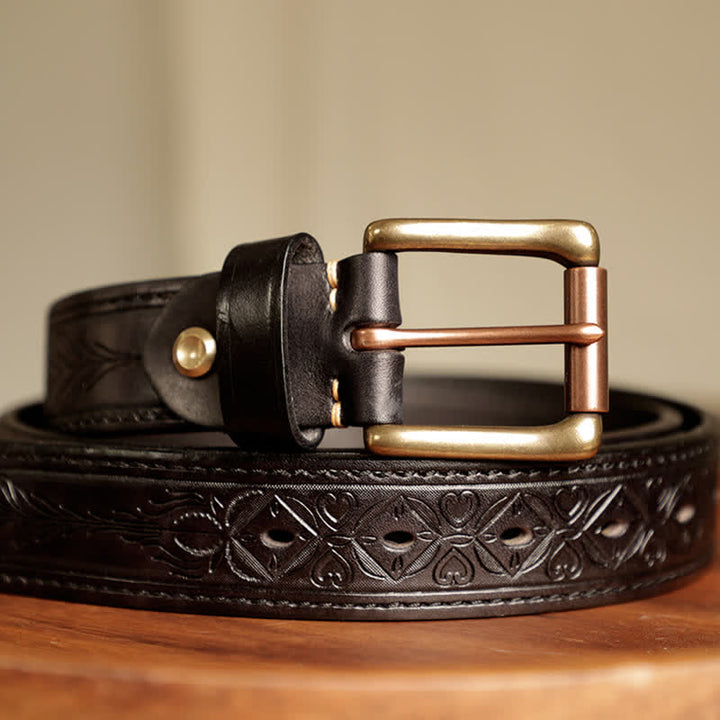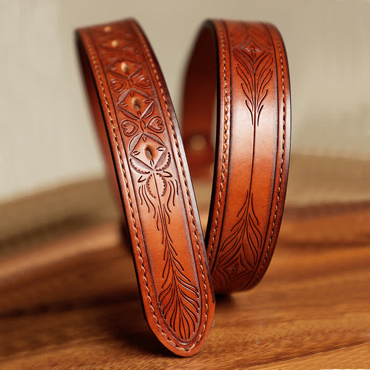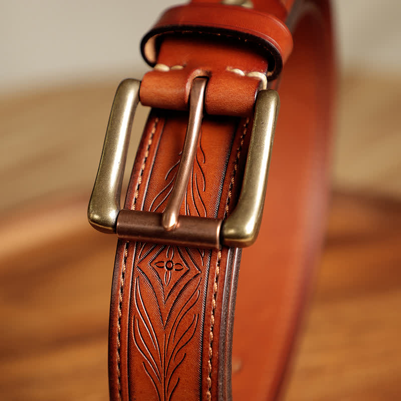 Cinturón de cuero grabado con hojas y flores en relieve para hombre