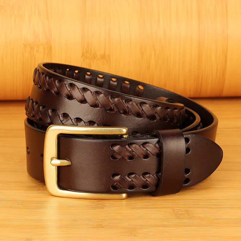 Cinturón tejido a mano fabricado con cuero de alta calidad con hebilla clásica de un solo pasador. Este cinturón de cuero tejido para hombres es ideal para casi todos los caballeros en cualquier ocasión informal o formal, muy elegante para combinar con jeans, ropa de calle o ropa de golf.
