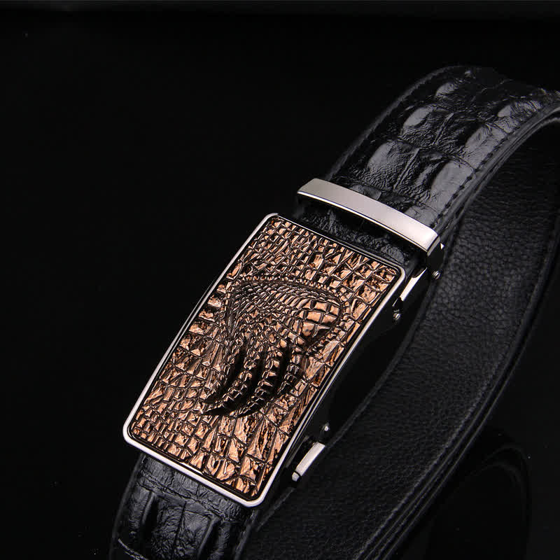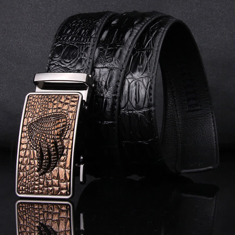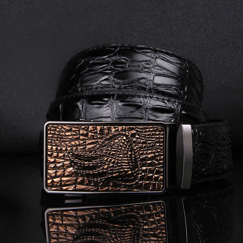 - Fabricado con precisión y estilo, este cinturón de piel de cocodrilo para el hombre moderno está diseñado para elevar su atuendo a nuevas alturas.